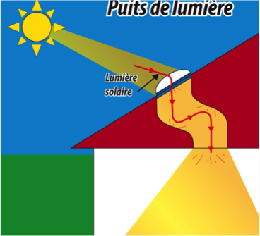 Il existe également d’autres infrastructures telles que les puits de lumière. Ils permettent d’illuminer une pièce avec une lumière naturelle. Le principe se base sur un jeu de miroirs, permettant de renvoyer les rayons du soleil jusqu’à la fin d’un tube. Un disque se trouvant dans la pièce à éclairer diffuse alors la lumière venue de l’extérieur.